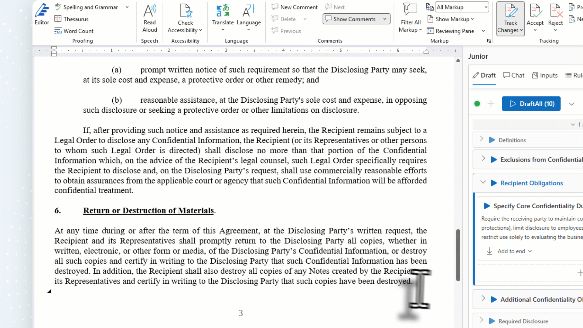 From contracts and patents to trademarks and compliance, watch JR3 draft across document types, inside Word.